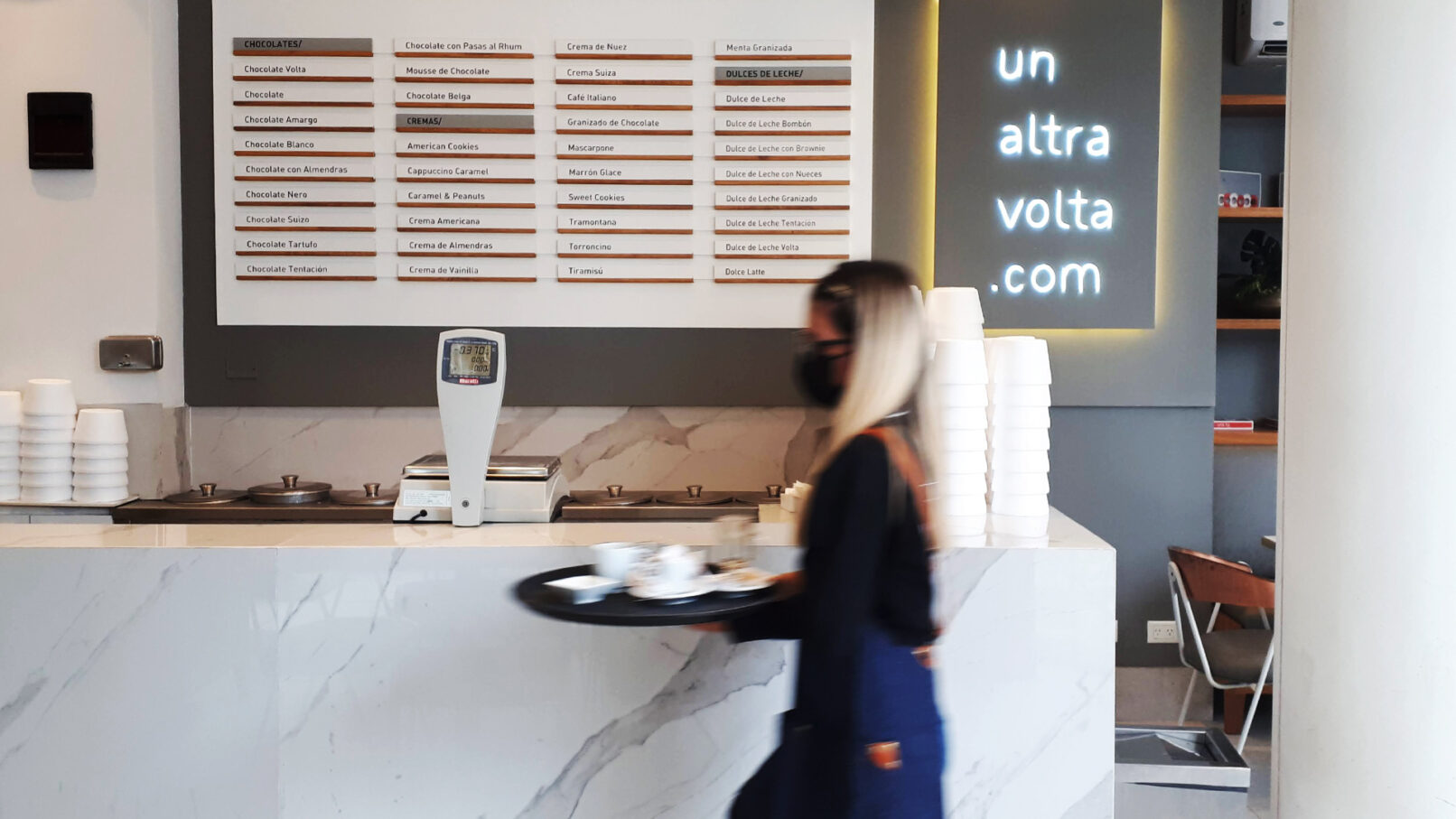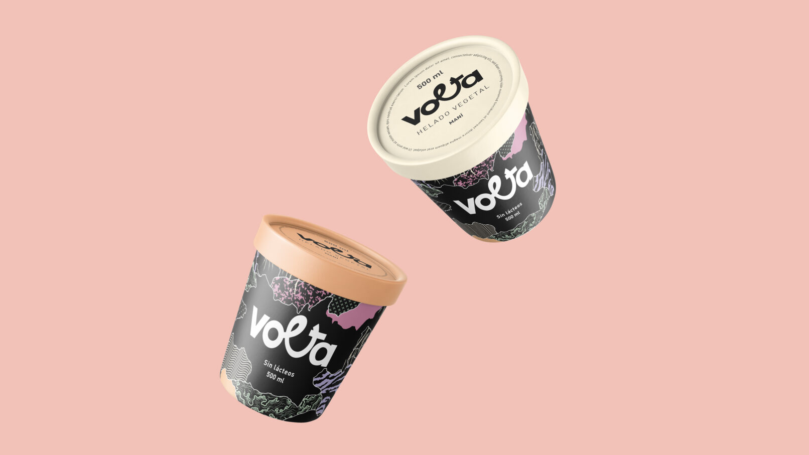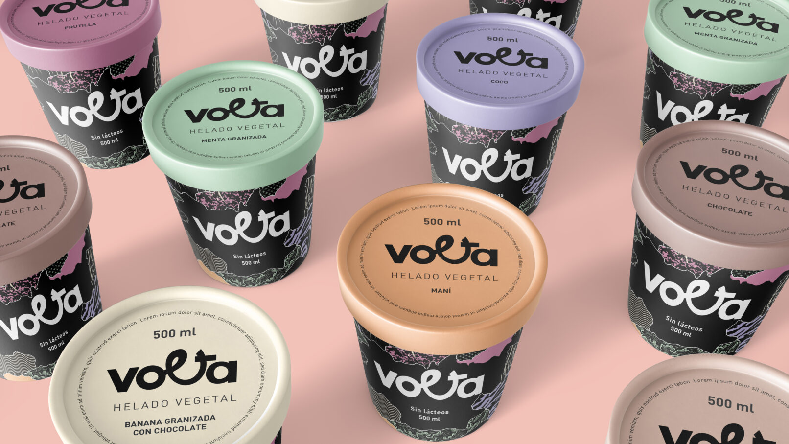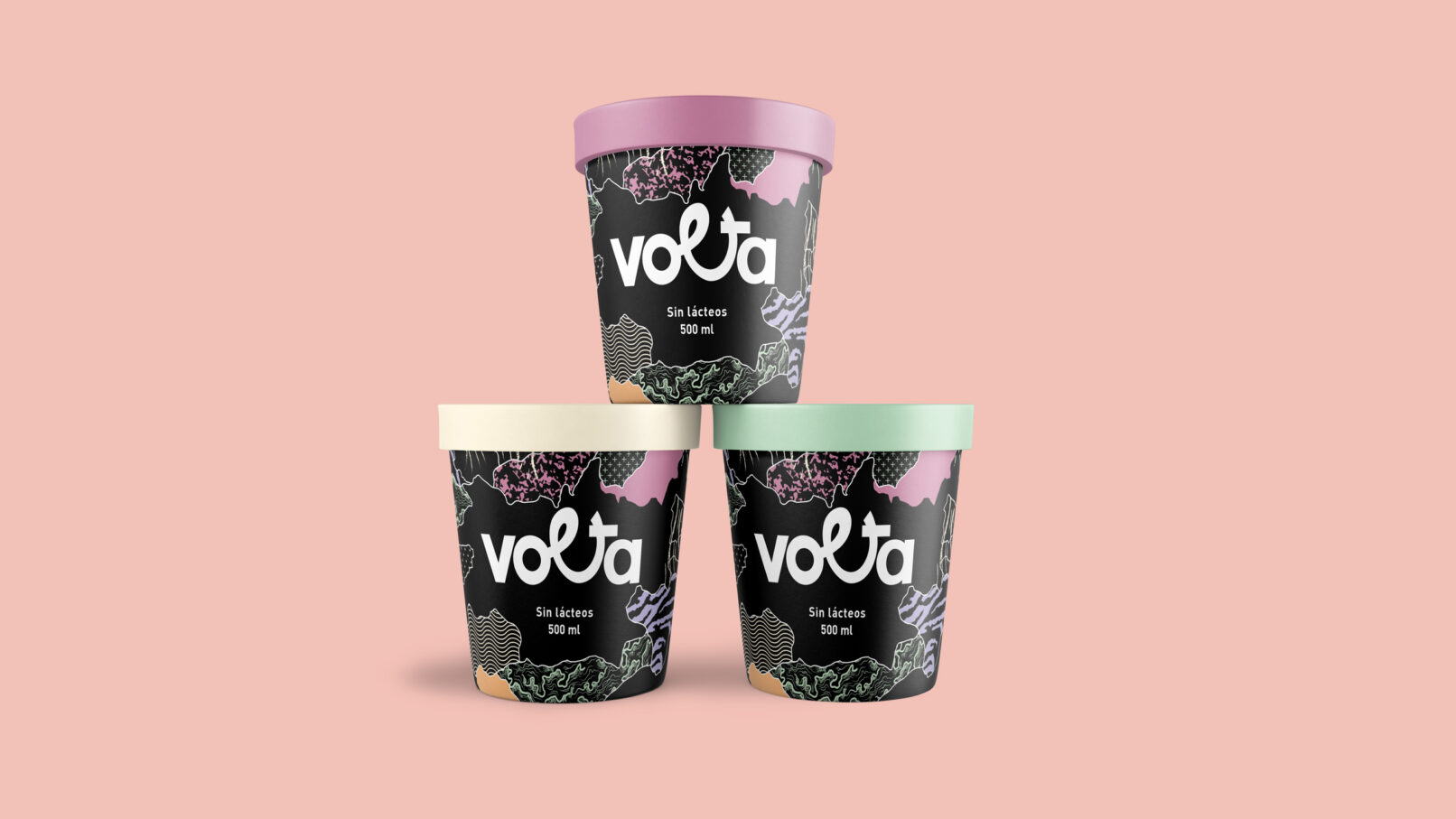 Volta is a traditional ice cream franchise in Argentina with near 100 years of experience. We designed a new vegetarian line of ice cream. For the project we created a new logo (to differentiate from their main), the packaging for eight new flavours and also the back wall of their flagship store.